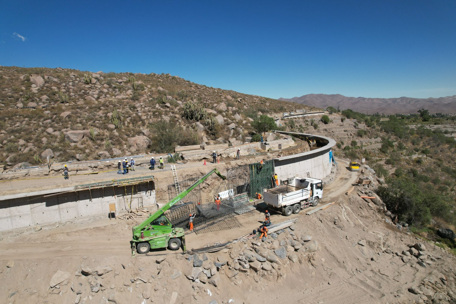 Entre las principales metas se contemplan la construcción de muros de contención, instalación de alcantarillas, cunetas, accesos vehiculares y peatonales, señalización vial y barandas metálicas. Además, se está implementando una nueva línea de conducción de agua potable, la reposición de canales de concreto y el cruce de canal en vía, junto con medidas de seguridad, salud y protección ambiental.